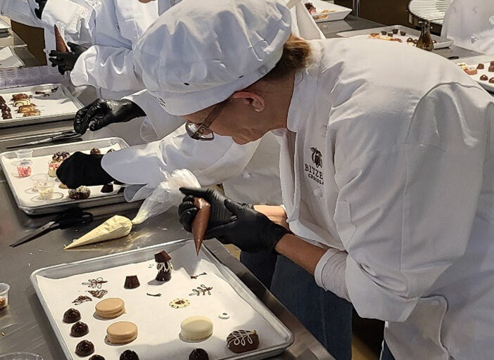 Introduction and deep dive into chocolate, origins, process, history, tempering, and bean to bar process. Guests will experience the science of chocolate from bean to truffle, while learning the science & techniques for professional chocolate making. You will leave with a deep appreciation of the art of chocolate as well as freshly made creations to share with friends and family.